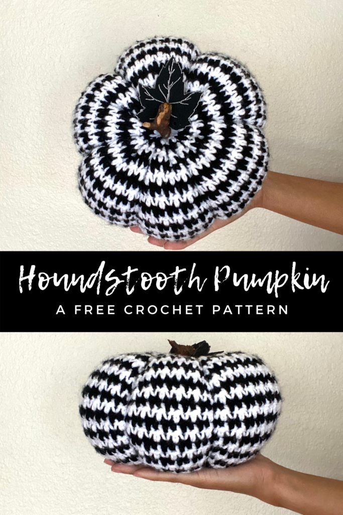 Who’s ready for one last pumpkin pattern of the season?! If you’ve been following me on Instagram, you know that I’ve been updating some of my posts and patterns weekly. With the Houndstooth Slouch Hat update on the agenda this week, I decided that a perfect addition to the pumpkin collection would be a crochet houndstooth pumpkins!