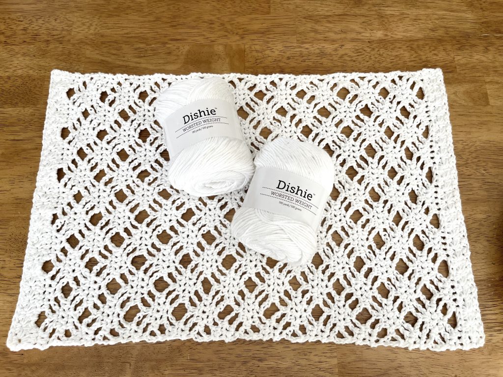 For this project, I used Dishie yarn from WeCrochet. As with most home decor projects, I chose to use cotton yarn for this set. Dishie is such a great cotton yarn to work with. I love the texture of it and the fact that it comes in so many colors! And extra bonus, it’s a really affordable option. If you want to check out Dishie too, just click the button below to head there now.